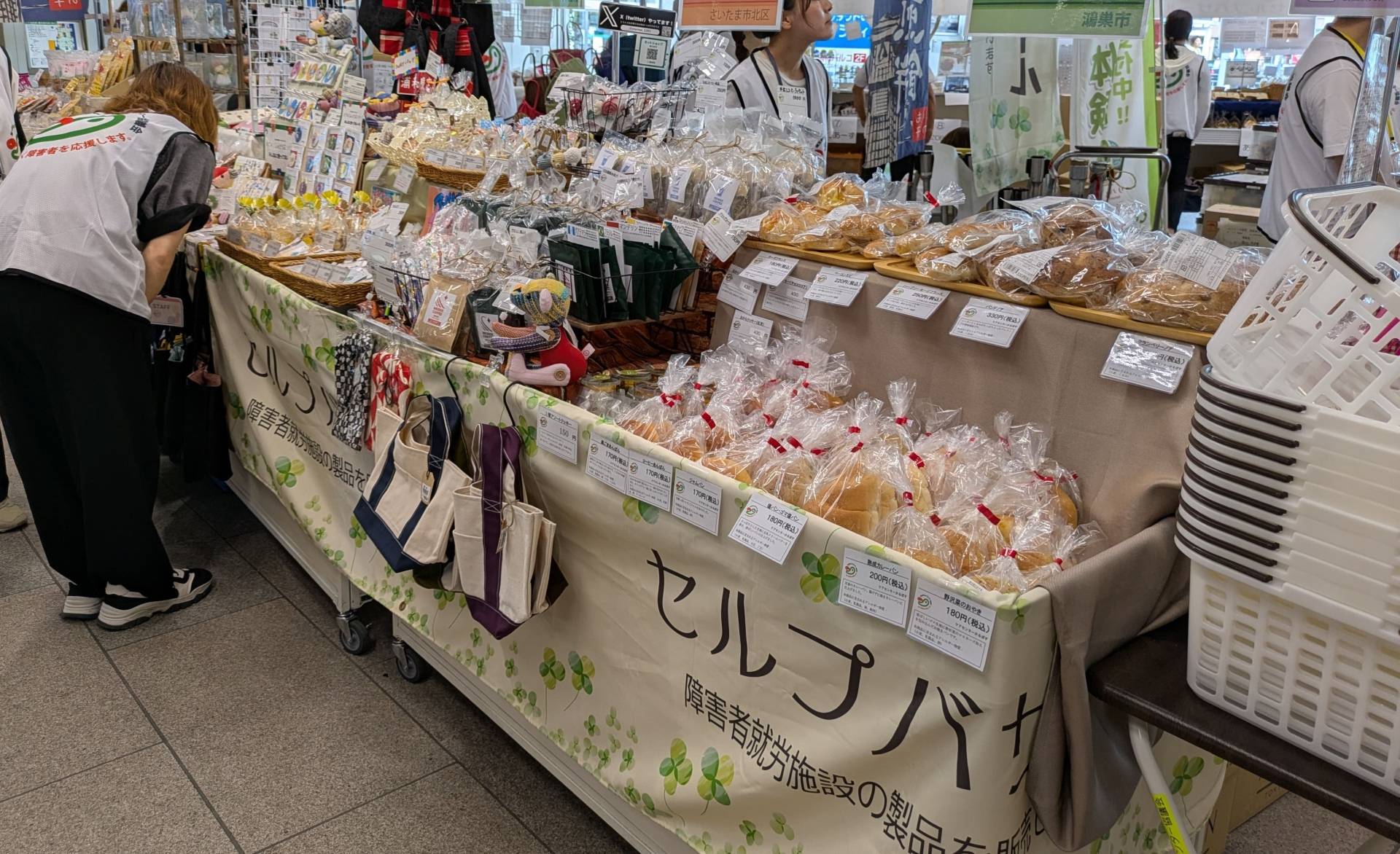 今年の売上は1,758,610円となり、昨年度の1,687,700円を上回ることができました。全体的に売上が伸びていることは、気候や駅利用者の当日の人数等に影響される部分はあると思いますが、参加事業所が毎年試行錯誤しながら喜んでもらえる商品を開発し続けている結果だと思います。更に、この販売会が事業所同士の刺激になり、切磋琢磨しながら今後の販売意欲の向上につながっていくことを願っています。