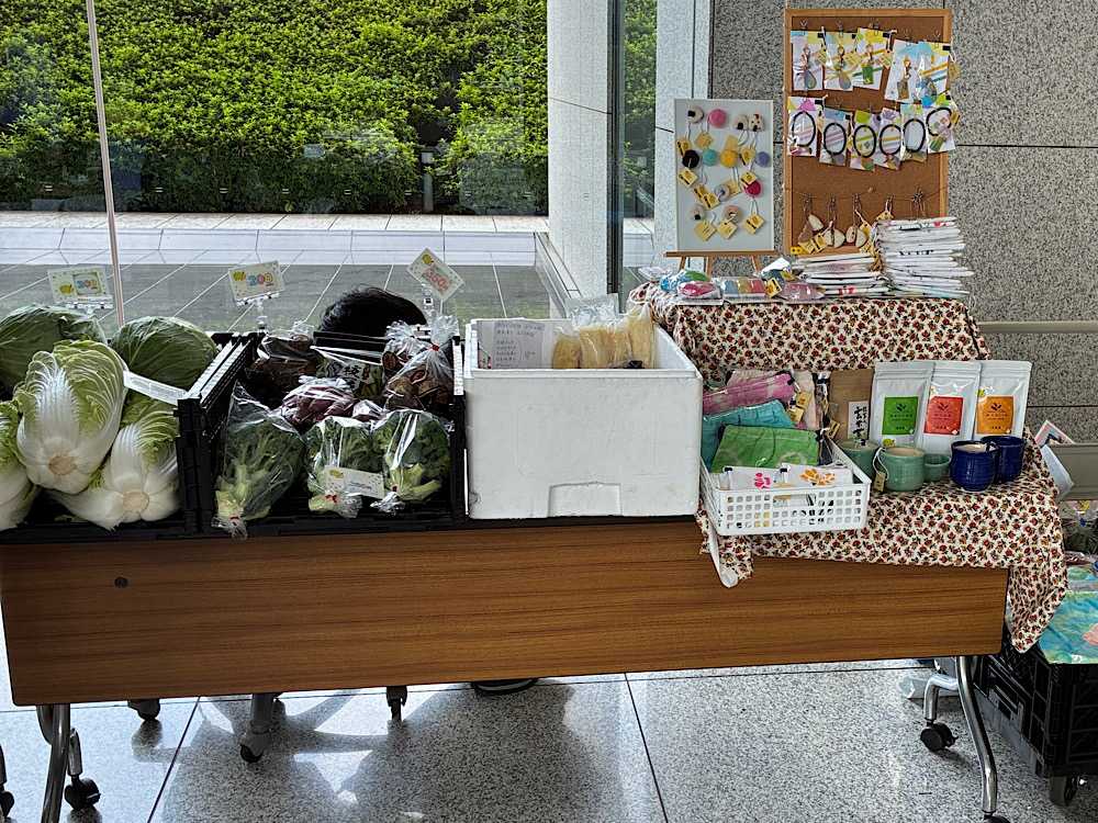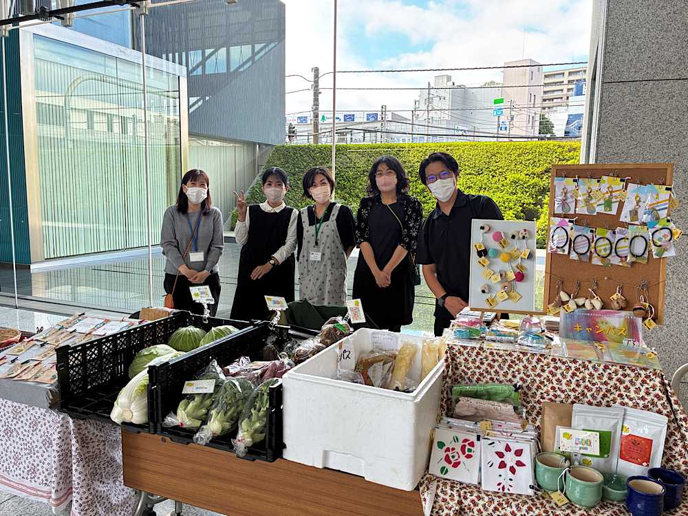 販売会には、数か月ぶりに外へ出ることができた利用者さんも販売員として参加してくれました。在宅で商品を作成、販売会では自分で作った商品を販売することができました。「自宅に近いから、参加することができました。」と笑顔で話す利用者さんに、会場が温かい雰囲気に包まれました。1階ロビーで開催のため、地域の皆さんも気軽にお立ち寄りいただき、和やかな販売会となりました。このような応援の輪が広がるきっかけを作ってくださった飯能信用金庫様に、心から感謝いたします。